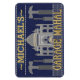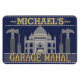 Este diseño divertido y personalizado es perfecto para decorar tu cueva masculina. Dice, "[Tu nombre] Garage Mahal" y muestra un contorno del Taj Mahal con martillos, choferes y un auto pequeño que parece que está estacionado en el medio. Añade fácilmente tu nombre a la parte superior. Los colores son azul, gris y amarillo dorado.