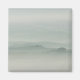 Imán fotográfico de recuerdo con un paisaje de colores pastel con las siluetas de dos casas y filas de cipreses rodeadas de parches de niebla durante una salida del sol en la madrugada en el valle Val d'Orcia en Toscana, Italia.