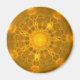 Composición inspirada en diagramas abstractos y cósmicos de mandala. El diseño se basa en un patrón repetitivo que crea un diseño simétrico redondo con una apariencia visual similar a un encaje. El patrón repetitivo tiene la forma de un sector circular situado alrededor del centro y las líneas están coloreadas en tonos claros de amarillo, naranja y verde. El patrón hace una combinación perfecta con el fondo amarillo iluminado, lo que hace que el patrón pop sea aún mejor. La selección de color general es bastante cálida, basada en los colores vivos del sol, que parecen un símbolo de vida, energía, fuerza y salud.