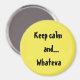 Tantas citas de "Mantengan la calma/ Permanezcan tranquilos". Simplemente deberíamos decir: "Mantengan la calma y Whateva". La cita está en un imán grande, amarillo, redondo de 3 pulgadas. Los imanes están disponibles en otros materiales, formas, colores y tamaños de Zazzle de nuestra tienda BsApparelPlus. ¡Gracias por comprar con nosotros!