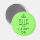 Un diseño verde y luminoso con una nueva versión del clásico Keep Calm and Carry On.