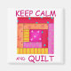 Muestra tu amor por el tejido con este divertido y colorido bloque de colchas que proclama "Mantener la calma y la frescura". Este diseño es arte de tejido original con el bloque de tejido de labios favorito. La palabra "tejido" es fácil de cambiar a otra palabra de su elección. El edredón presenta colores vivos y dinámicos, como el naranja, el amarillo, el rosa, el turquesa y el rojo, para una bonita paleta de colores. Personalizable total de personizar. El arte de la caldera es arte original de la diseñadora de tejidos y tejidos Phyllis Dobbs. Este arte está disponible en otros productos y en varios entornos de colores, y también está disponible en otros productos de Keep Calm con diferentes pinturas de tela.