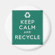 Keep Calm and Recycle es una parodia de la guerra post Keep Calm and Carry On. Fondo verde con aspecto templado. Reciclar símbolo y texto blanco. ¡Maravillosos regalos ambientales para los recicladores y el Día de la Tierra!