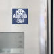 "Mantener el aborto legal". Texto azul/blanco en círculo, en camisetas, botones, pegatinas, regalos.