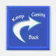 Magnet con Keep Coming Back escrito sobre el fondo de color azul aterciopelado y la flecha señalando como si.para apuntar el camino a volver.