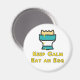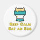 Para los amantes de los huevos, el diseño "Keep Calm and Eat an Egg" muestra un huevo abierto en un huevo estriado azul con el mensaje "Keep Calm" debajo. Un divertido diseño de huevo para la gente que tranquilamente disfruta comiendo huevos.