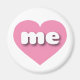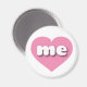 Este imán presenta un vibrante corazón rosado que contiene las letras negrita, blanca, redondeada de funda inferior, una abreviatura juguetona para Maine, el estado del pino.