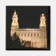 Hermoso imán con foto del Templo Manti LDS de noche. Fantástica arquitectura mormón—Templo Manti en Manti, Utah.