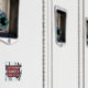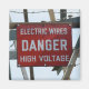 Señal de peligro de alta tensión en una torre de alta tensión.