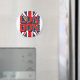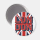 El London Flag Magnet ilustra la bandera británica y los colores en el fondo con la tipografía personalizado 3D para aquellos que aman visitar el corazón de Inglaterra, recuerdos, turismo o sueño de ir allí algún día. Las imágenes de la bandera para significar el patriotismo. Creado con letras personalizados únicas y ilustracion para los que solo aman los estilos únicos y de Novedad! Diseñado por Katrina Sutton