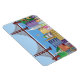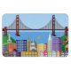 Edificios y monumentos de la ciudad de San Francisco con puente Golden Gate y veleros coloridos imán de Ilustracion y dibujo