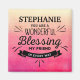Personalizable Alegre emblema tipográfico con palabras: "SU NOMBRE, eres una bendición maravillosa en todos los sentidos". El diseño incluye adornos y banderas de diseño y un bonito fondo oscuro (amarillo y rosa).