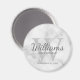 Añada un toque personal a su boda con un imán de abarrotes personalizado. Este imán presenta el nombre personalizado del groomsman en estilo de letra de escritura gris clásico con detalles bodas en estilo de fuente serif gris clásico y monograma en estilo de fuente serif gris claro clásico como fondo, sobre fondo de mármol blanco. También perfecto para el mejor hombre, padre de la novia, portador de anillo y más. Los detalles de mármol se simulan en las obras de arte. Este producto no será fabricado con mármol real.