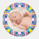 Marco circular de verano vibrante azul, rosa y verde Nuevo imán de regalo de bebé de abuelo. Reemplace la foto con una imagen de su chica o niño recién nacido. Regale como regalo a los nuevos abuelos. Abuela, abuela, niñera, abuela, abuela y papas pop les encantará poner este imán de regalo en su nevera para celebrar el nacimiento de su nieto de recién nacido. En los colores alegres y coloridos del verano.
