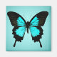 Mariposa - azul turquesa y negro - foto realzada digitalmente contra fondo azul turquesa / verde azulado
