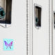 Una mariposa decorativa rosa y violeta, multicolor, con elegantes alas estampadas y una larga antena delicada, un diseño fresco y colorido.
