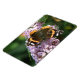 Este imán impresionante presenta una fotografía de una hermosa mariposa del Almirante Rojo. Esta especie es principalmente negra con parches naranjas vívidos en cada ala junto con manchas blancas. La mariposa está sentada en un pico de flores de la bonito de Buda morada disfrutando de un poco de néctar. La fotografía fue tomada usando macrofotografía para obtener un resultado asombrosamente detallado.