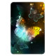 Mariposas brillantes nocturnas sobre fondo negro abstracto. Mariposa Luminosa.