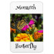 ¡La Hermosa Mariposa Monarca! Una de las más abundantes mariposas. Famoso por su migración estacional. Tamaño medio, cuerpo amarillo con rayas negras, manchas blancas. Su planta anfitriona es la planta de Milkweed. La hembra planta sus huevos blancos ovalados en la hierba de leche. Los hombres tienen dos puntos negros en sus alas traseras. Esta que fotografié, es recién renacida, sólo 10 minutos antes de esto. La planté en una flor rosada de oro. La bebida de las plantas de néctar. Principalmente su propia planta anfitriona, la alga lechera, con sus flores rojas y amarillas. Como oruga, son rayas negras blancas amarillas. Disfruta de esta encantadora foto de una Mariposa Monarca renacida, en los imanes de mi tienda! ¡Colorido para tu frigorífico! Copyright Fotografía de Deborah Carr.
