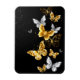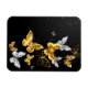 Oro, joyas y mariposas blancas sobre fondo negro. Mariposa dorada.