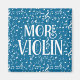 Un diseño divertido y feliz Más violín con fondo azul con texto blanco y notación musical.