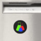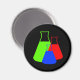 Imán negro con gráficos de cartón Erlenmeyer rojo, azul y verde - símbolos científicos coloridos.