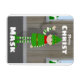 Carácter elfo lindo sosteniendo una máscara facial. El texto dice "Máscara de Cristo Feliz"