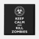 Divertida parodia de "Mantengan la calma y sigan adelante". ¡Mantengan la calma y maten a los zombies! Haga clic en "Personalizar" y luego en "Editar" para cambiar el fondo a cualquier color.