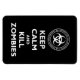 Divertida parodia de "Mantengan la calma y sigan adelante". ¡Mantengan la calma y maten a los zombies! Haga clic en "Personalizar" y luego en "Editar" para cambiar el fondo a cualquier color.
