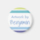 Este imán tiene las palabras "Obra de arte" con un nombre personalizado, para que cada niño pueda mostrar su propia obra de arte. El diseño de rayas azules y verdes aporta un toque artístico adicional.