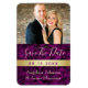 Elegante, caligrafía script, falso oro y Purple Wedding Salve el imán de invitación de fecha con foto.