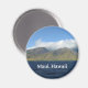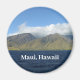 Saludos desde el hermoso Maui Hawái con esta impresionante fotografía del paisaje en un bonito imán para turistas o nativos de la encantadora isla. Cuenta con una región montañosa verde con nubes blancas exuberantes y cielo azul sobre las olas del océano de un profundo azul de la playa.