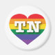 Este imán presenta un corazón de orgullo arcoiris y las letras mayúsculas en negrita, blancas, TN, la abreviatura oficial de Tennessee, el estado voluntario. Muestra tus verdaderos colores, apoya el matrimonio igualitario y celebra el orgullo gay.