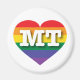 Este imán presenta un corazón con un diseño de orgullo arco iris y las letras mayúsculas en negrita, blancas, MT, la abreviatura oficial de Montana, el estado del tesoro. Muestra tus verdaderos colores, apoya el matrimonio igualitario y celebra el orgullo gay.