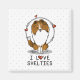 Me encantan los estantes (me encantan los pastores de Shetland) - Perro divertido, sonriente, caricatura con amor, rodeado de corazones rojos flotantes. Derechos reservados © Angi Laframboise. Regalos de personalizado de raza de perro para los amantes del perro.