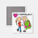 Un lindo chico y un chica con una figura de palo caminan de la mano, ella llevando un premio de carnaval relleno y él sosteniendo un perro de maíz. El texto dice carnavales (corazón), perfectos para todo aquel que ame carnavales y ferias. Camisetas de carnaval, tazas, bolsos de té, botones, pegatinas, imanes, llaveros, tarjetas y más!