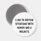 Por el amante del sarcasmo en todos nosotros. Echa un vistazo a este ingenioso diseño de "Me gusta difuminar situaciones con humor y un machete" sobre prendas de vestir y regalos.