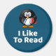 Pingüino lindo y gracioso de "Me gusta leer" sosteniendo sus libros.
