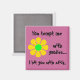 No es un punto sutil que estés haciendo con este imán. Saboteurs mira hacia fuera. Pequeña flor de bonito sobre fondo morado.