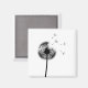Una silueta de león con semillas que soplan decora este imán sobre un fondo blanco, haciéndolo perfecto como símbolo de buenos deseos.