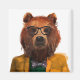 Este diseño presenta un retrato de oso vestido con gafas y una chaqueta.