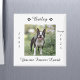 Honre a su amado mascota con este imán mascota conmemorativo personalizado. Este diseño se completa con el nombre de su mascota con dos huellas de pata, las fechas en que vivieron y las palabras "Eres siempre amado". Si desea un dicho diferente, puede reemplazarlo por su propio texto personalizado. Este diseño también viene con un espacio para añadir una foto de tu perro.