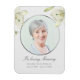 Este imán ligero y amoroso de conservas conmemorativas muestra una foto de tu ser querido enmarcado por un marco plateado de buen gusto y ilustraciones vintage de hermosas mentiras. La ligera textura de papel aporta un toque cálido. Productos a juego como la ayuda con servicios conmemorativos, libros de invitados, velas, etc disponibles en nuestra colección "Vintage Botanical Lilies Funeral".