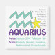 Este Aquarius Traits Magnet es un regalo de cumpleaños perfecto para cualquier Aquarius. Aquarius es el onceavo signo del zodiaco e incluye a todos los individuos nacidos del 20 de enero al 18 de febrero. El símbolo Aquarius es el portador de agua. Los rasgos de personalidad de Aquarius son amistosos, honestos, creativos, independientes e impredecibles. Ametismo es la piedra de nacimiento de Aquarius y el planeta gobernante de Aquarius