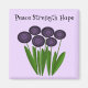 Un diseño floral malva con flores moradas con tallos verdes y follaje. Un dicho de esperanza de 'paz'. Las palabras pueden cambiarse si así lo desea.