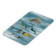 Este ilustracion presenta una variedad de merfolk de todo el mundo. Los seres descritos incluyen: una sirena del norte de Europa de cabello rubio, una mezcla masculina de culto irlandés con un gorro rojo, un manto danés de piel azul, un bonito vestido de collar de las tradiciones del pueblo saa'a de las Islas Salomón, un ningyo japonés de rostro humano y un kaaiman de ojos rojos de Sudáfrica.