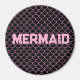 círculo de 3 pulgadas. Vieiras rosas y negras. Tipo de letra heredado.
