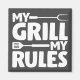 Fun barbeque gráfico que dice: "My Grill My Rules", con una horquilla bbq y espátula. Haga clic en "Personalizar" para cambiar la imagen y el color de fondo. | Imagen de Badea Mihai | Shutterstock. ID de la imagen: 1742273987 | Shutterstock® - Todos los derechos reservados.