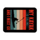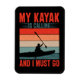 Impresionantes camisetas de diseño de kayak, posters, bolsas, planificadores y más con una silueta en kayak en un río con texto que dice ¡Mi Kayak llama y debo irme! Este colorido kayak está muy bien diseñado para los kayakistas, que parecen no tener suficiente tiempo para hacer kayak en el agua.