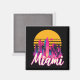 Estilo retro "Miami" diseño de texto ilustracion al atardecer con sol y rascacielos decoración en rosa, amarillo y púrpura